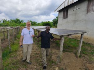 Und das stimmte. Die junge Frau war schon recht gut ausgebildet. Aber als Frau, in einem Dorf im Nirgendwo, ohne Job, ohne sinnvolle Tätigkeit, waren ihre Zukunftsaussichten recht überschaubar. Durch die Photovoltaikanlage, die wir betreiben, konnten wir mehrere Mitarbeiter einstellen. Unter anderem Christabelle als Kassiererin. Sie konnte sich regelmäßig weiterbilden und hat ein solides, stabiles Einkommen, was ihr Ansehen verschafft. Und sie hat die Möglichkeit, über IT und Internet auf dem Laufenden zu bleiben und sich weiterzuentwickeln. Jetzt ist sie verheiratet, hat einen kleinen Sohn und ist mittlerweile Eigentümerin eines kleinen Häuschen. So sieht Wohlstand in Kamerun aus.