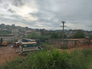 Bonabera. Es gibt nur eine Straße rein und raus aus Douala, die Straßen sind katastrophal, der Verkehr ist mörderisch und Spuren werden sehr großzügig ausgelegt. Dazu kommen Regenzeit, Schlamm und so tiefe Schlaglöcher, dass man selbst mit dem Toyota Hilux Achsbruch befürchten muss.